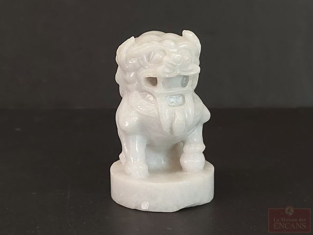 Lot # 210 - Foo-dog sculpté sur jade naturel du Myanmar, mesurant 3 pouces de hauteur et pesant 305 grammes SOLD