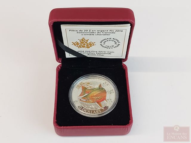 Lot # 120 - Pièce canadienne de vingt dollars en argent pur 9999 2016 Salmonidés du Canada : l'Omble Chevalier, sans taxes SOLD