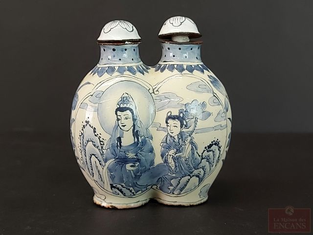 Lot # 239 - Deux bouteilles à priser chinoises en laiton émaillé, peintes à la main, la plus grande mesurant 2.75 pouces de hauteur SOLD