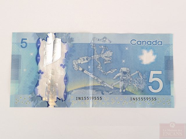 Billet canadien de cinq dollars 2013 avec numéro de série radar