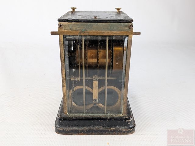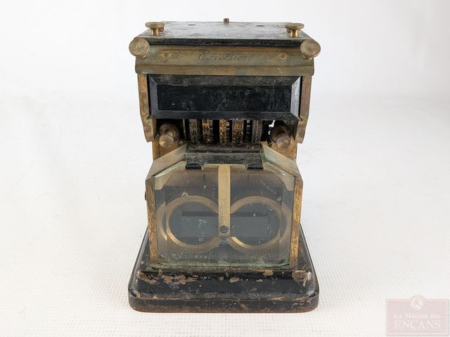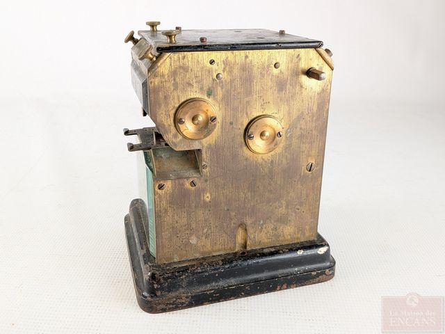 Ancien horodateur Excelsior en laiton et verre, circa 1900, mesurant 8.25 pouces de hauteur