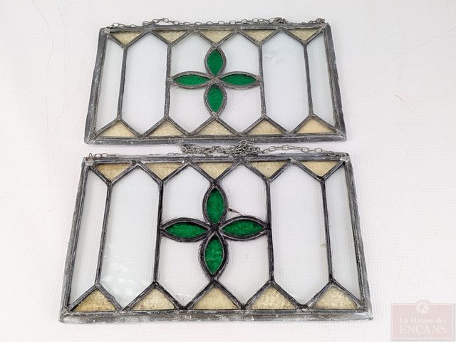 Deux panneaux de fenêtres en vitrail, mesurant 12x7 pouces chacun