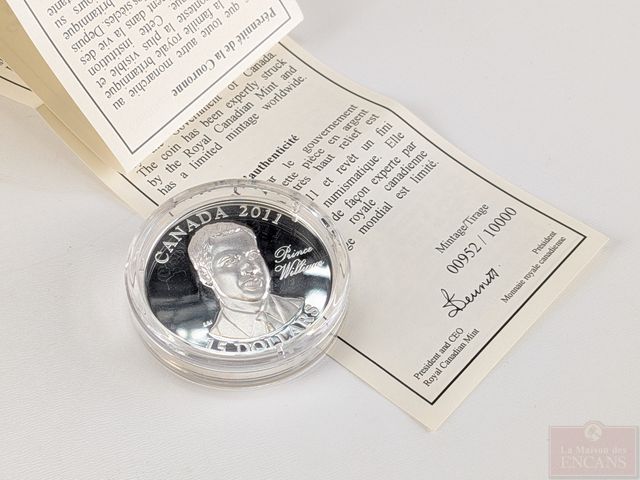 Lot # 112 - Pièce canadienne de quinze dollars 2011 en argent Le prince William, encapsulée, dans sa boite d'origine avec coffret et certificat