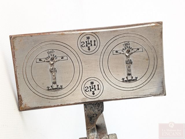 Lot # 55 - Rare et ancienne presse à hosties en acier, mesurant 27 pouces de longueur