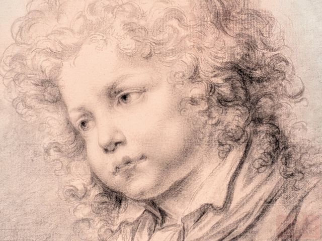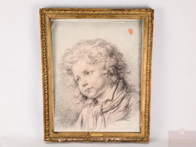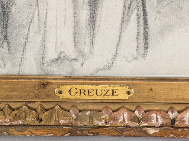 Lot # 45 - Jean-Baptiste GREUZE- dessin sur papier , mesurant 16x12.5 pouces, avec encadrement à la feuille d'or