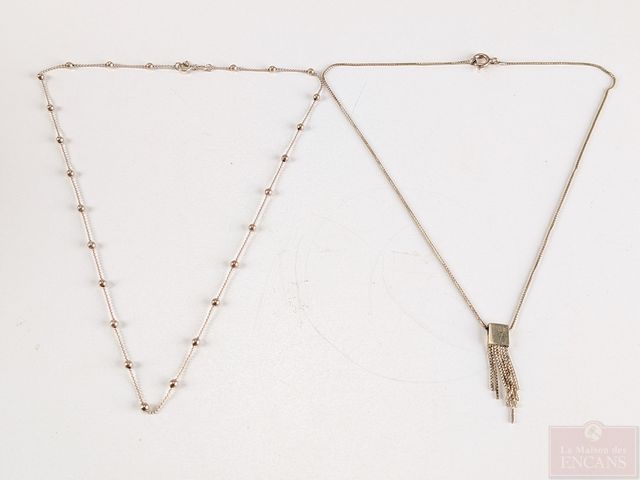 Lot # 63 - Deux colliers en argent, le plus grand mesurant 18 pouces de longueur