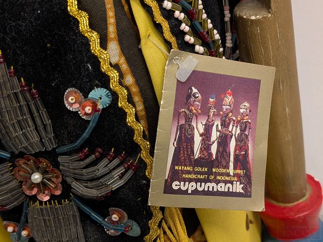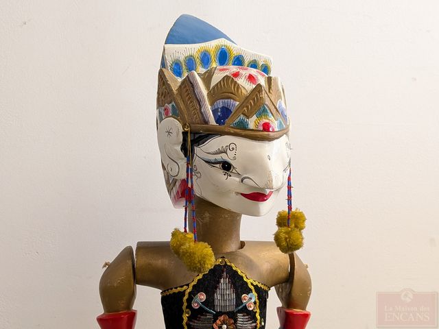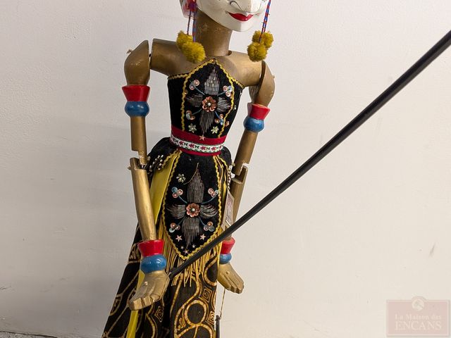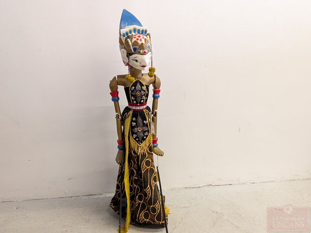 Lot # 24 - Marionnette dansante en bois et tissu, fabriquée et peinte à la main en Indonésie, représentant Shinta et mesurant 36 pouces de hauteur