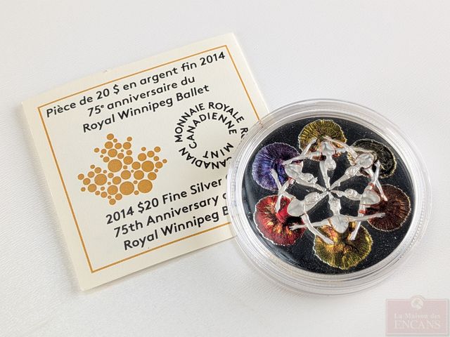 Lot # 85 - Pièce canadienne de plus d'une once d'argent pur 9999 vingt dollars 2014 Soixante-quinzième anniversaire du Royal Winnipeg Ballet, encapsulée, dans son coffret musical d'origine avec certificat, sans taxes