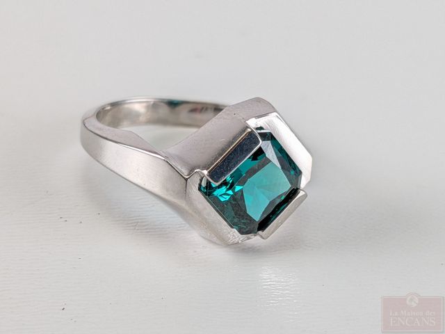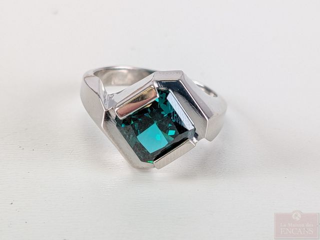 Lot # 96 - Bague en argent sertie d'une pierre, taille 7