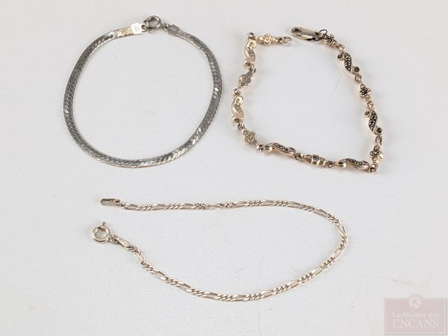 Trois bracelets en argent, le plus grand mesurant 7 pouces de longueur