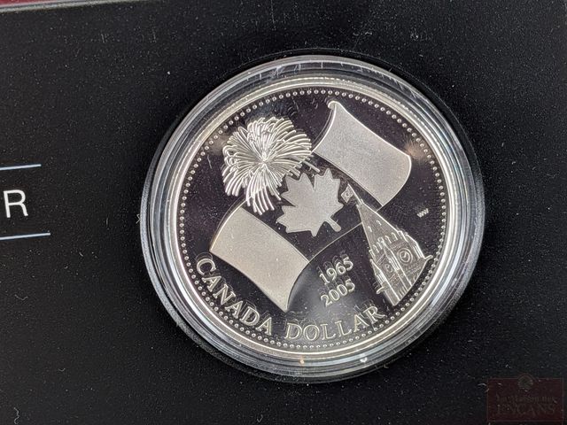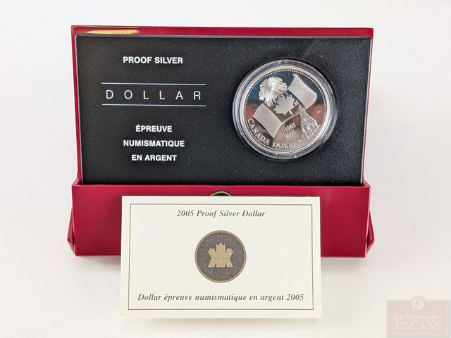 Lot # 108 - Pièce canadienne d'un dollar proof 2005 en argent pur 9999, encapsulée, dans sa boite d'origine avec coffret et certificat, sans taxes
