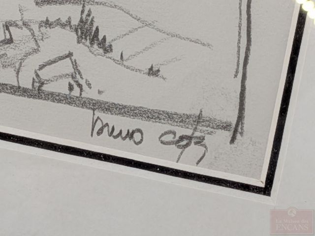 Bruno CÔTÉ- Dessin à la mine signé, mesurant 3x4 pouces