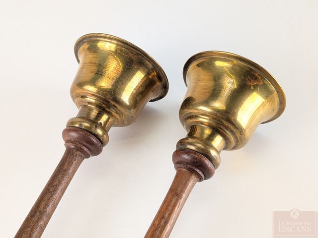 Lot # 54 - Torches de procession en bois et laiton, mesurant 24 pouces de hauteur