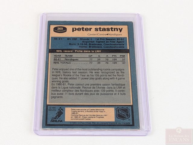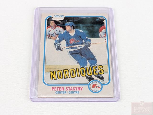 Carte O-Pee-Chee Peter Stastny 1981 avec rondelle de hockey officielle des Nordiques de Québec 1980