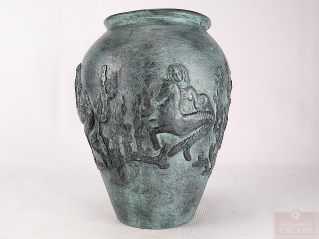 Lot # 12 - Vase en terre-cuite à motifs de sirènes, fait en Espagne et mesurant 11 pouces de hauteur