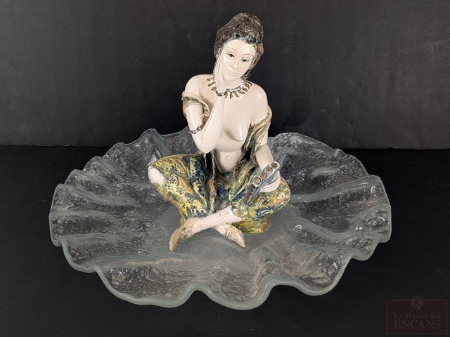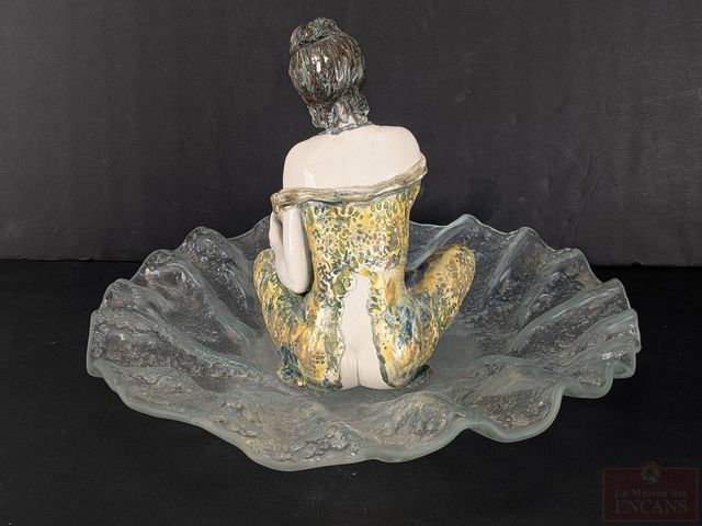 Lot # 13 - Huguette BOUCHARD BONET- (femme de Jordi Bonet) Superbe céramique en verre modelé, signée, mesurant 9 pouces de hauteur et 11 pouces de diamètre, avec certificat