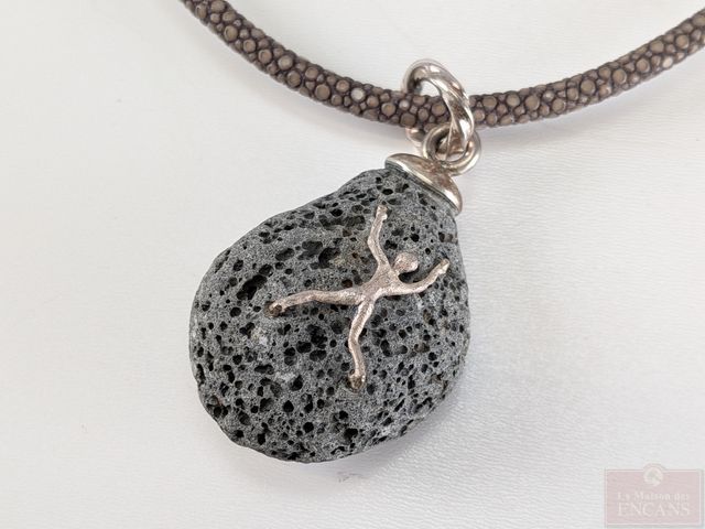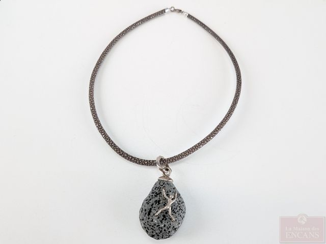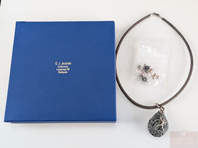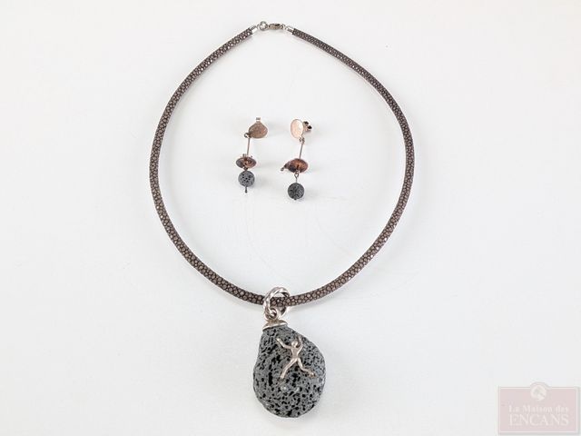 Lot # 104 - Ensemble pendentif et paire de boucles d'oreilles en argent et pierre volcanique d'Islande, le pendentif mesurant 2 pouces de hauteur et les boucles d'oreilles mesurant 1.25 pouces