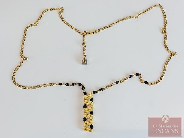 Lot # 99 - Collier moderniste en étain Anne-Marie Chagnon mesurant 28 pouces de longueur, dans sa pochette ANNULÉ