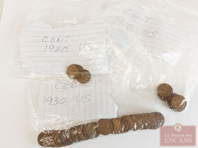 Gros lot de sous noirs canadiens et américains, certains datant des années 1910, 1920, 1930, 1940 et 1950