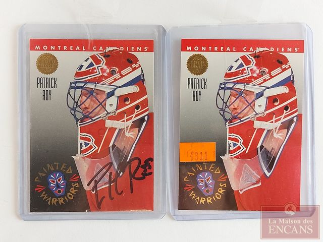Lot # 150 - Lot de cartes de hockey de Patrick Roy, dont une autographiée VENDU