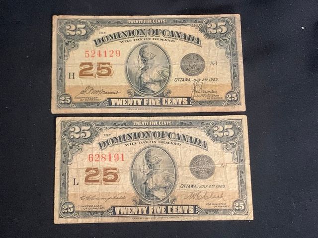 Lot # 259 - Deux billets de 25 cents de 1923 VENDU