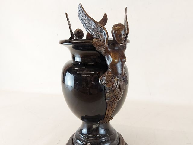 Lot # 70 - Superbe vase en granite avec anges en bronze mesurant 15.5 pouces de hauteur VENDU