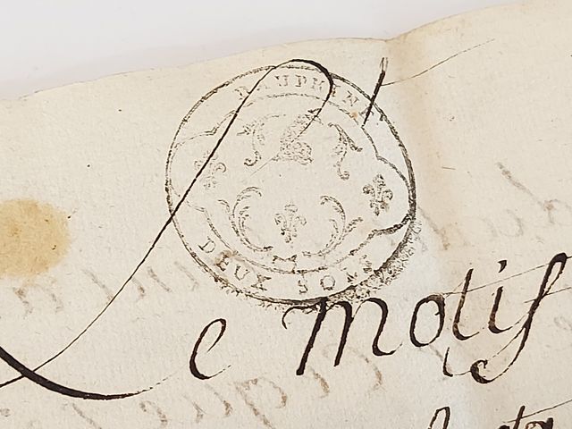 Lot # 27 - Document manuscrit avec sceau Dauphine deux sols - 18em siècle SOLD