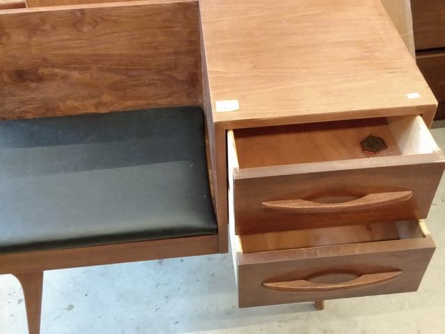 Lot # 12 - Joli banc d'entrée mid-century avec deux tiroirs - mesurant 17x28x33 pouces VENDU