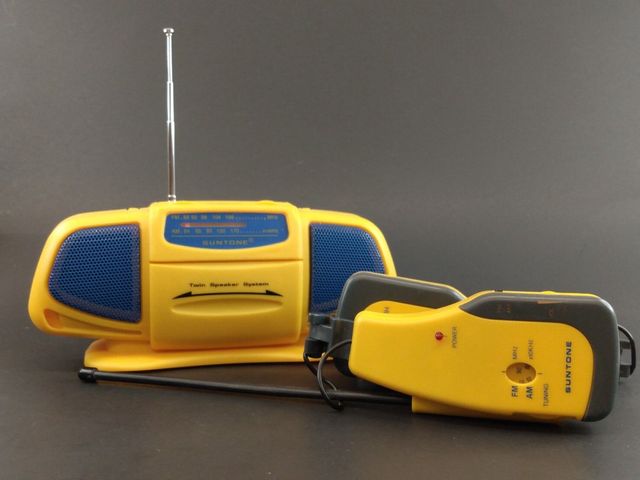 Lot # 151 - Deux Radio Am/FM miniature - dans leur boite - mesurant 7x3 pouces - ainsi qu'un casque Suntone SOLD
