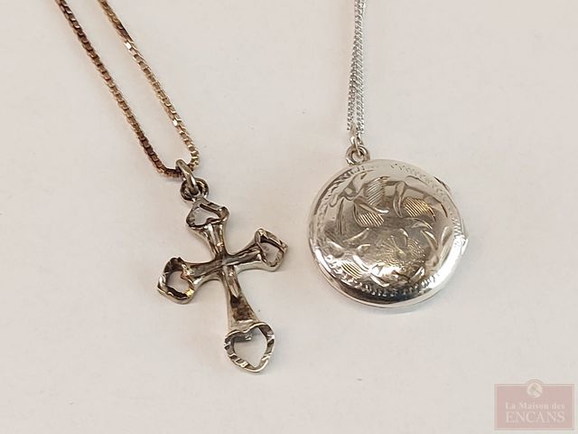 Lot # 88 - Lot de bijoux en argent comprenant chaines, bracelets, bague poison, loquet et autre; la plus grande chaine mesurant 19 pouces de longueur SOLD