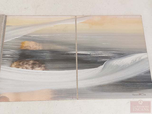 Claude VERMETTE- Huile sur panneau signée, pliable à cinq volets, mesurant 13x55 pouces lorsque déployée