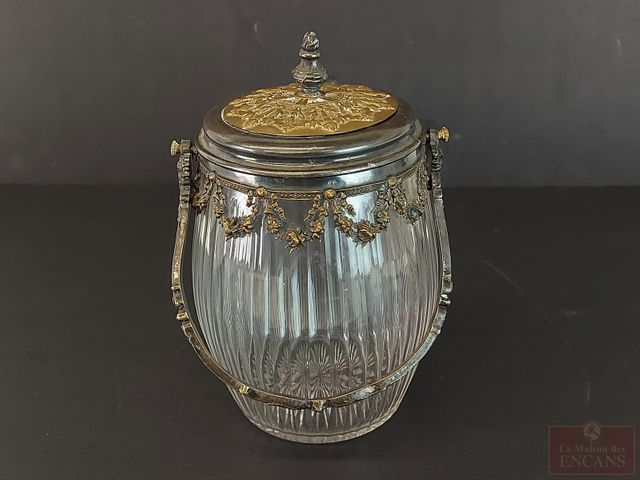 Lot # 144 - Jarre française en cristal et laiton argenté de style Louis XVI, datant du 19eme siècle et mesurant 8 pouces de hauteur SOLD