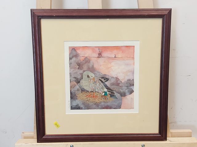 Lot # 17 - S. LANGLOIS - Aquarelle sur papier signée et mesurant 7x7 pouces SOLD