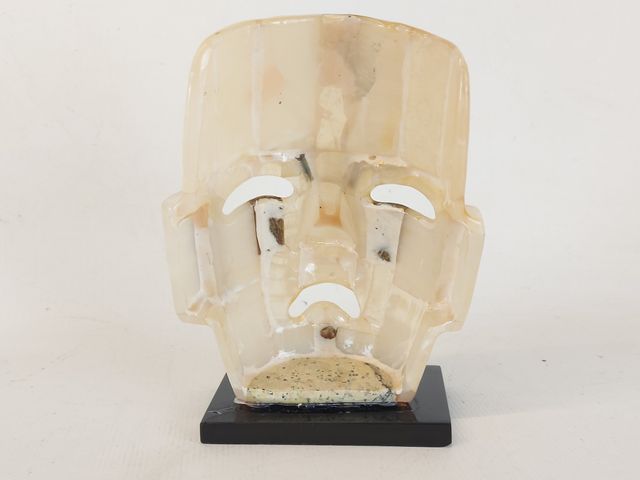 Lot # 93 - Masque Inca avec facettes en nacre de perles et onyx - mesurant 6.5 pouces de hauteur VENDU