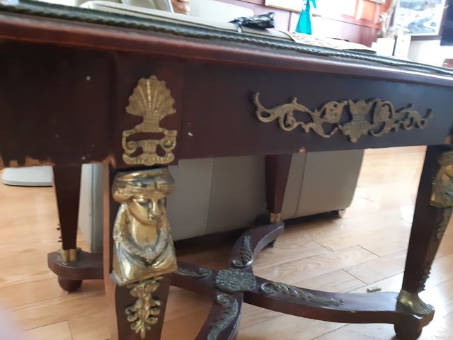 Lot # 178 - Table d'appoint à dessus de marbre et appliques en laiton doré. Devra être récupérée par l'acheteur à ville St-Hubert. 37 long x 19 largeur x 20 haut VENDU