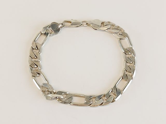 Lot # 45 - Bracelet figaro en argent mesurant 8 pouces de longueur et 9.7 mm de largeur VENDU