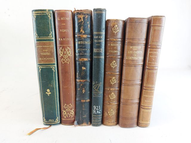 Lot # 140 - Lot de livres anciens comprenant Voyages en Afrique Tome XX et XXI de C.A Walckenaer datant du 19ème siècle - Histoire de l'Empereur Napoléon de P.M Laurent de L'Ardèche datant de 1840 - Jean-Paul Choppart de Louis Desnoyers datant de 1854 - Les Frères de la Côte d'Emmanuel Gonzalès datant de 1863 - Madame de Monsieur Cardinal de Ludovic Havély datant de 1873 - Lettre à une Inconnue Tome 1 et 2 de Prosper Mérimée le premier datant de 1873 et le second du 19ème siècle - Colomba de Prosper Mérimée datant de 1888 - Le Corsaire Rouge de Fenimore Cooper datant du 19ème siècle - L'étui de nacre d'Anatole France du 19ème siècle - Oeuvres de Johan Wolfgang Von Goethe datant du 19ème siècle (livre ayant appartenu à Pierre Dansereau) - Le Vicaire de Wakefield (1766) d'Olivier Goldsmith datant du 19ème siècle - Récits algériens 1830-1848 d'E. Perret datant du 19ème siècle - Mémoires 1772-1821 (Aide de Camp de Napoléon) de Jean Rapp datant du 19ème siècle - Mousse La vie au long cours (dédicacé par l'auteur) de Léopold Aujar datant de 1901 - Terres Françaises de Morton Fullerton datant de 1905 - Les Cadets de l'Impératrice de Maurice Montégut datant de 1908 - Talleyrand et la société européenne de Frédéric Loliée datant de 1911 - La Comtesse de Castiglione 1840-1900 datant de 1912 - Vénus Marine (dédicacé par l'auteur) de Léopold Aujar datant de 1912 - France Trente ans d'histoire 1971-1900 de Léonce Rousset datant de 1912 - La fête impériale de Frédérice Loliée datant de 1926 - Racine de Mme Saint-René Tallandier datant de 1927 SOLD