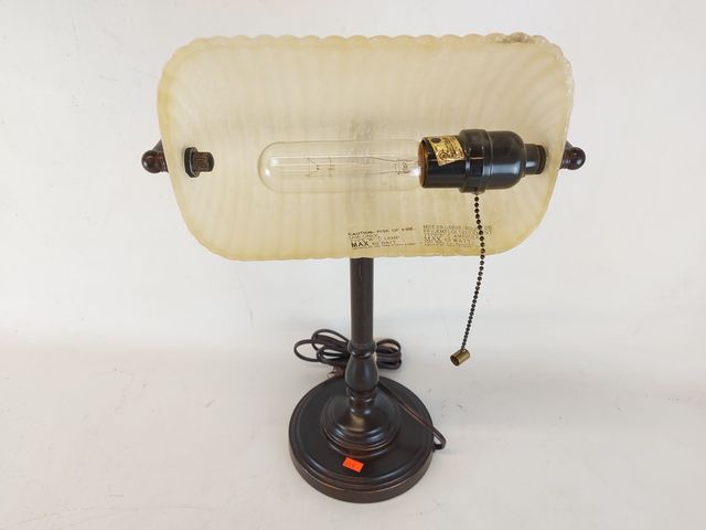 Lot # 238 - Lampe de bureau en métal avec abat-jour en verre - mesurant 16 pouces de hauteur VENDU