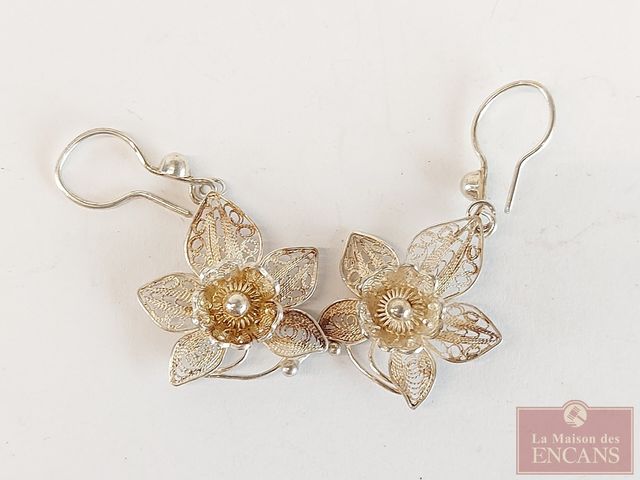 Lot # 90 - Lot de bijoux en argent, dont bagues de taille 6.75 et 6.5 et paire de boucles d'oreilles, plusieurs en filagrammes VENDU