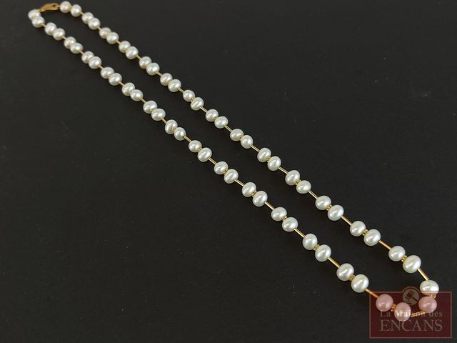 Lot # 223 - Ensemble collier et paire de boucles d'oreilles en or 14k avec perles naturelles, le collier mesurant 18 pouces de longueur SOLD