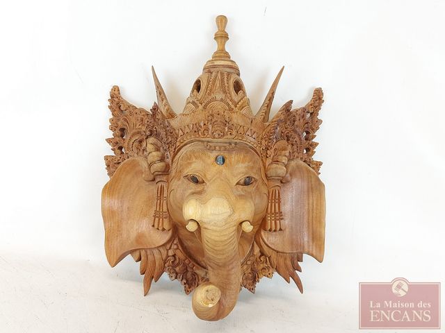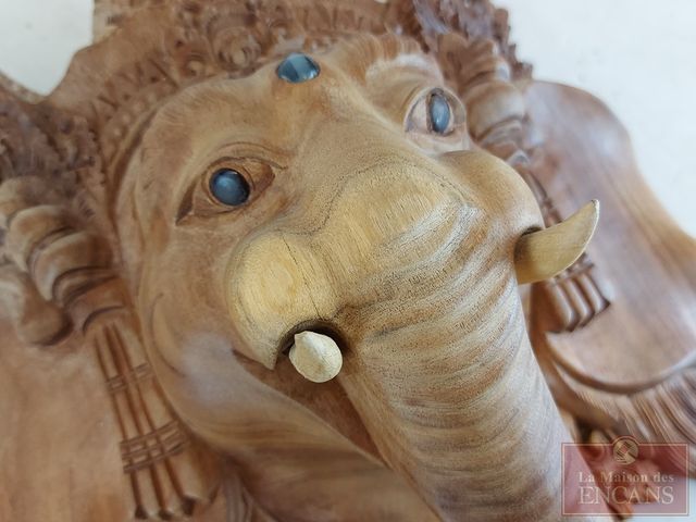 Lot # 43 - Applique murale balinéenne sculptée sur bois, représentant Ganesh et mesurant 14.5 pouces de hauteur VENDU