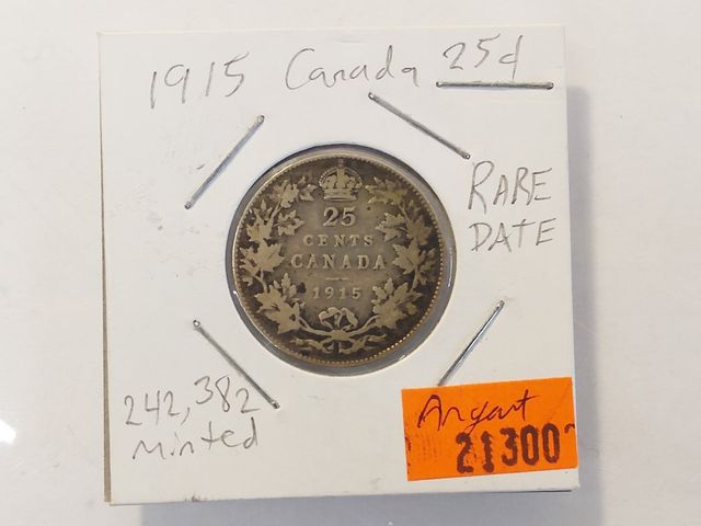 Lot # 76 - Rare pièce de 25 sous canadiens en argent - 1915 SOLD