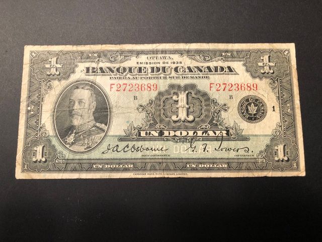 Lot # 28 - Billet de $1 de 1935 en français (plus rare) SOLD