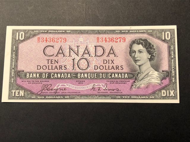 Lot # 107 - Billet de $10 de 1954 Devil Face UNC (jamais circulé) SOLD