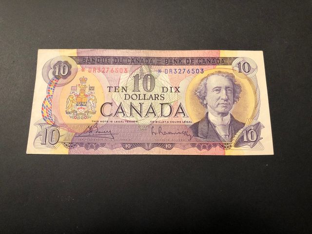 Lot # 60 - Billet de $10 de 1971 avec astérisque (numéro de remplacement) SOLD