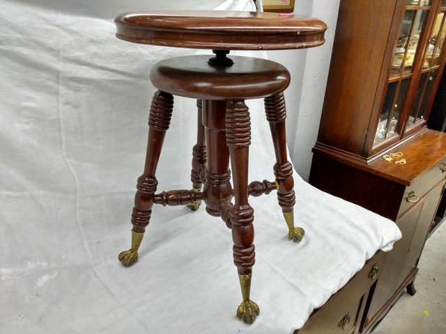 Lot # 239 - Très joli tabouret avec pattes d'aigles et boules de verre - 14 pouces de diamètre SOLD