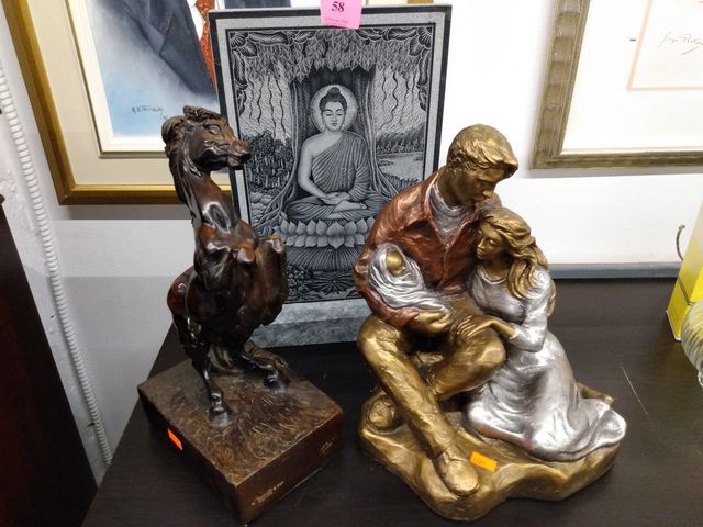 Lot # 58 - 3 objets décoratifs dont un bouddha et 2 sculptures Austin en plâtre SOLD