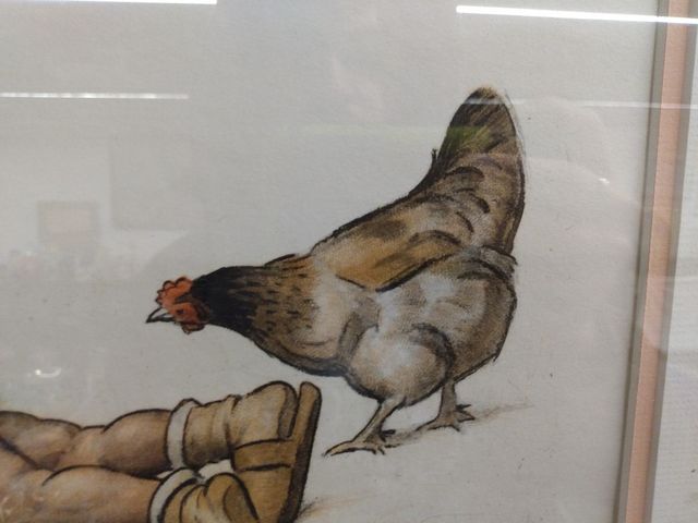 Lot # 116 - Pastel - 9 x 13 - La poule mange les escargots - signé SOLD