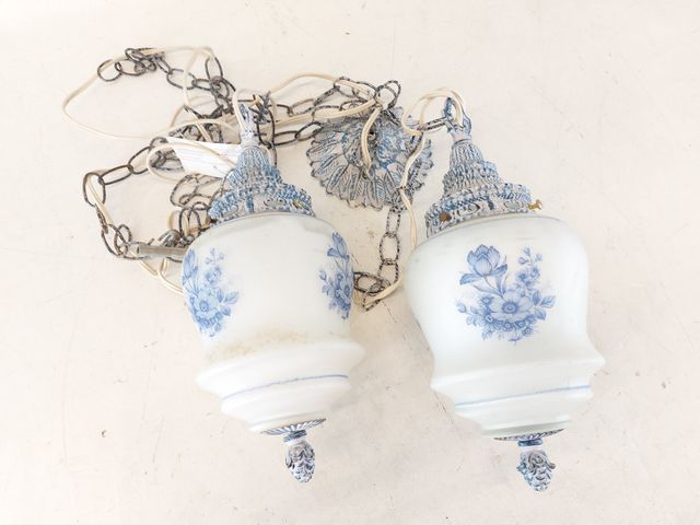Lot # 144 - Deux luminaires en métal avec globe en verre - le luminaire mesurant 13 pouces de hauteur SOLD
