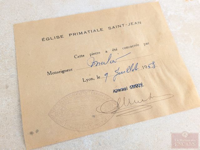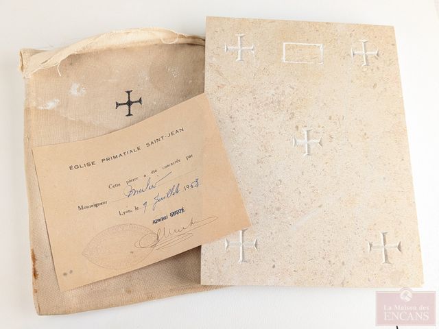 Lot # 79 - Pierre d'autel comprenant une relique et provenant de l'église primatiale Saint-Jean, mesurant 6x8 pouces
